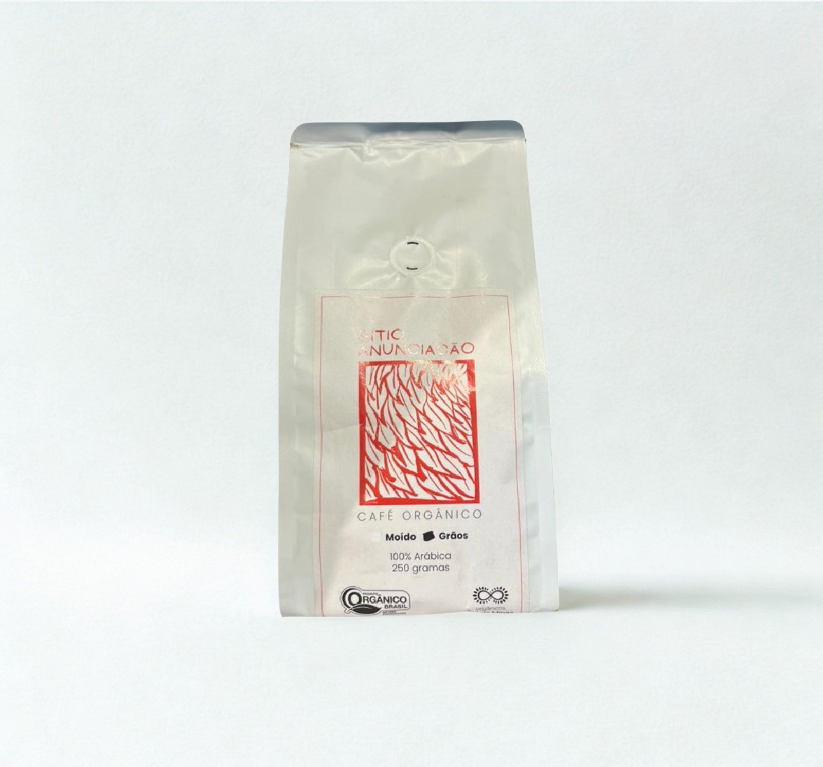 Cultivado em propriedade familiar (Sítio Anunciação), em região de montanha, o café se beneficia de clima ameno e altitude, que favorecem a maturação lenta dos frutos e maior concentração de açúcares. A embalagem de 250 g destaca que o café pode ser adquirido moído ou em grãos, permitindo escolher o formato ideal para o método de preparo da sua casa.